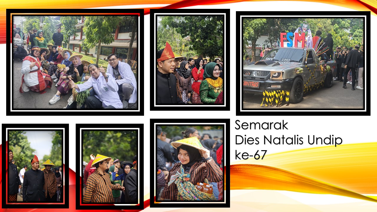 bio.fsm.undip.ac.id. Dalam rangka perayaan Dies Natalis Universitas Diponegoro (Undip) ke-67, diselenggarakan Karnaval Undip dengan tema “Pengentasan Kemiskinan dan Ketahanan Pangan” pada Selasa, 15 Oktober 2024. Acara ini diikuti oleh seluruh komponen civitas akademika Undip, dengan rute yang dimulai dari Dipo Hub menuju Lapangan Widya Puraya dan berakhir di Gedung Prof. Soedarto, S.H., Kampus Undip Tembalang.